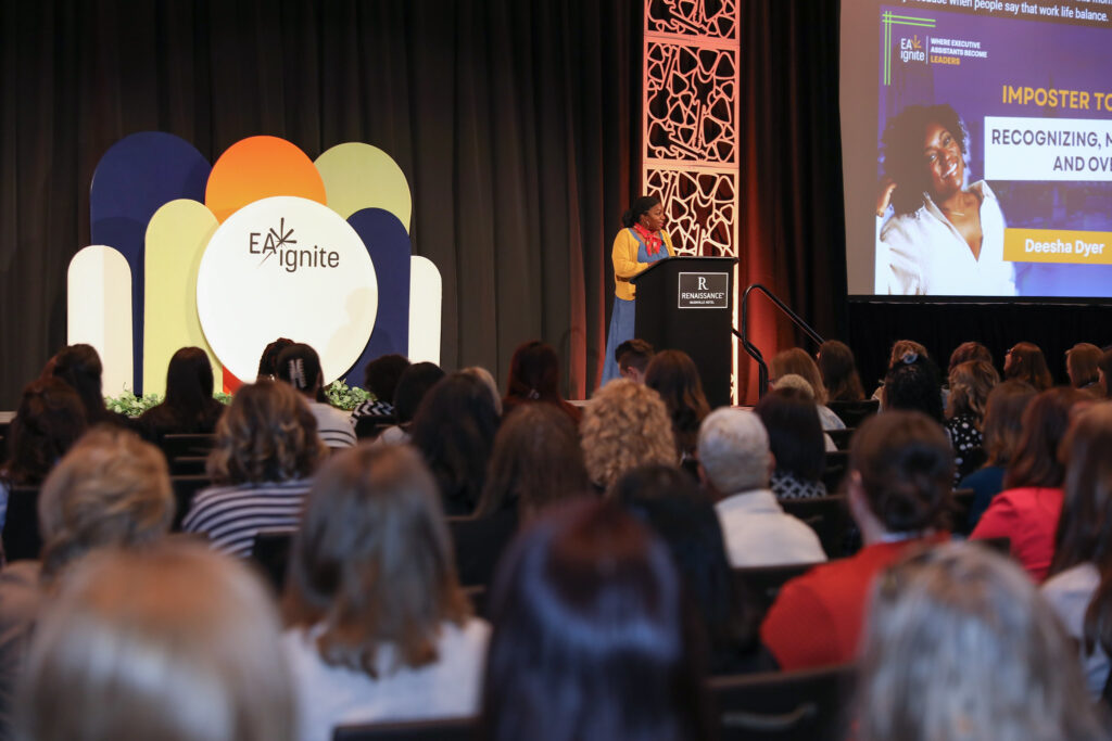 Designed for experienced executive assistants and administrative professionals who operate at a strategic level, EA Ignite brings together trusted experts and industry leaders to help attendees sharpen their strategic thinking, elevate their impact, and navigate the evolving demands of modern executive support. In her opening keynote, Imposter to Impact: Recognizing, Managing, and Overcoming, Deesha spoke directly to that audience: people who are often holding everything together while quietly questioning whether they belong in the room.